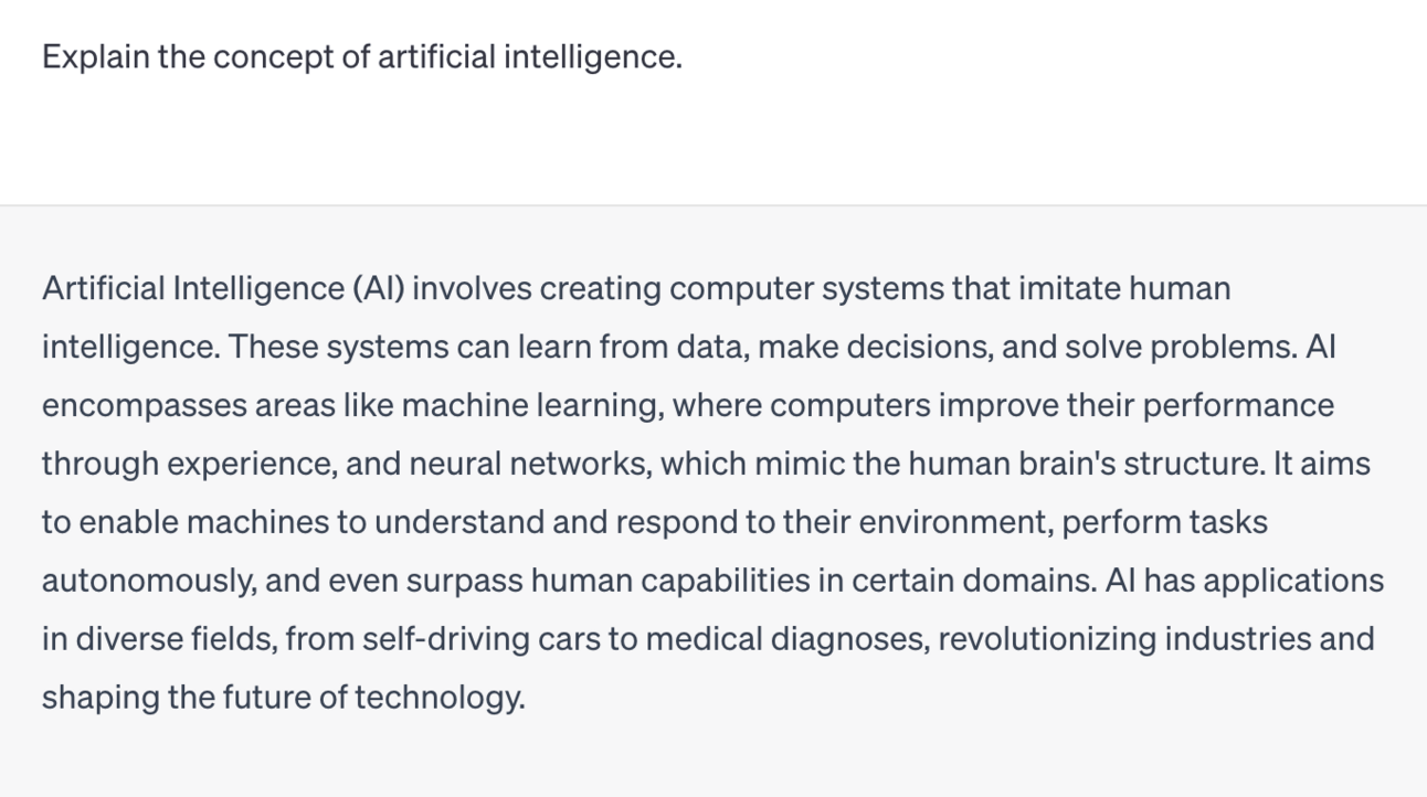 Example Prompt Variation 1: “Explain the concept of artificial intelligence