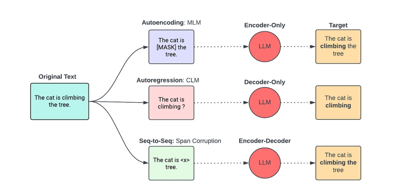 In the previous article “LLMs — A Brief Introduction” we ventured into Language Models, their importance, transformative Transformers, architecture types, and real-world applications. In this article, we will take a closer look at the heart of these models — their architectures. Furthermore, we will delve into the comprehensive understanding of distinct training objectives that complement each architecture.